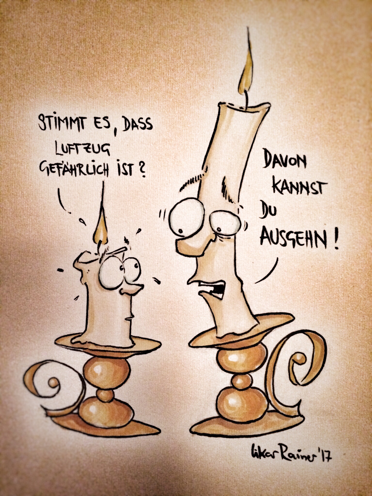 Davon kannst du ausgehn! 27. November 2017gezeichnete Wortwitzeausgehen, ausgehn, gross, kerze, klein, luftzugrainerlikar Neulich im Internet gelesen…das musste ich zeichnen🤪