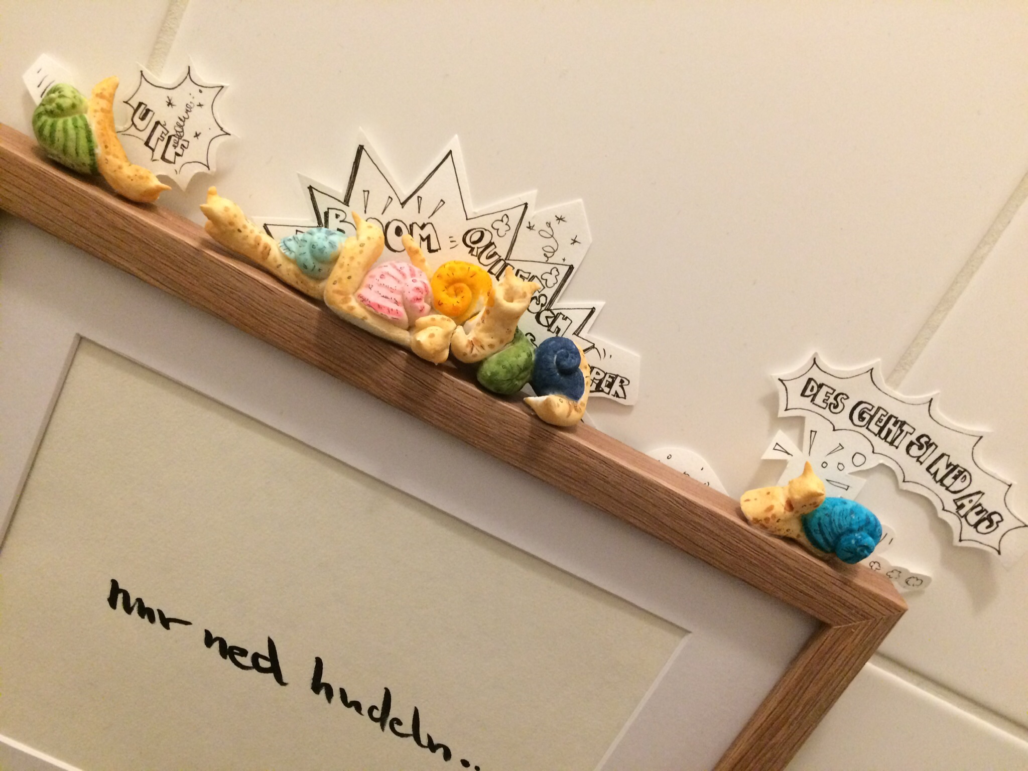 nur ned hudeln… 27. November 2018gezeichnete Wortwitzebremsen, crash, entschleunigen, hudeln, ned ausgehen, nur ned hudeln, schnecke, schnecken, unfallrainerlikar 3D Bild…geformt aus Salzteig und mit Copicstiften bemalt.
