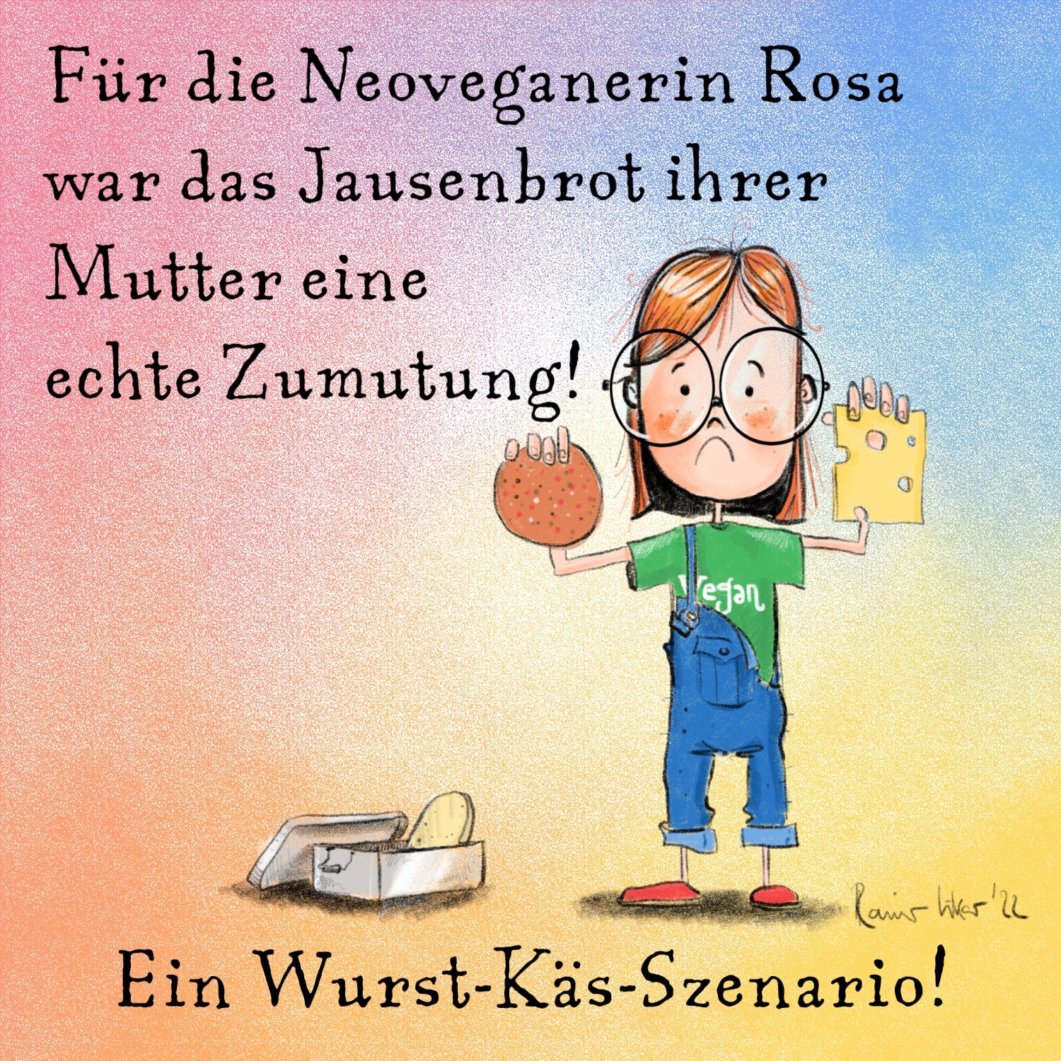 Wurst-Käs-Szenario… 18. Dezember 2022gezeichnete Wortwitzekäs, Mutter, neovagan, Szenario, unzumutbar, vegan, Veganerin, worst case, Wurst, Zumutungrainerlikar Tja…also echt Mutter!